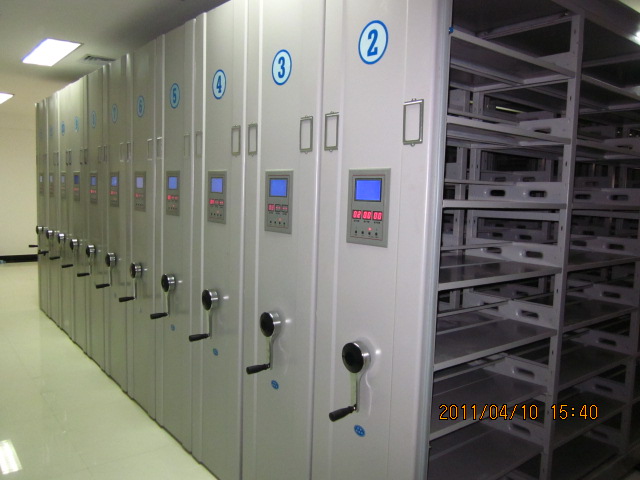 電腦智能型移動檔案密集架是集手動、電動、電腦三位控制與一體,三種操作相互聯系自動轉換