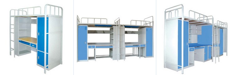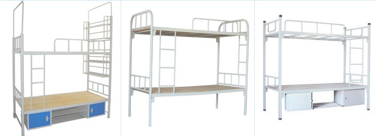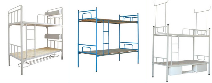 上下床:一般是規(guī)格為900毫米*2000毫米*1800毫米,由鐵制床架和木質(zhì)的床板組成的雙層床,床的側(cè)面有扶梯,上鋪有護(hù)欄。特點(diǎn)是節(jié)省空間。采用二氧化碳?xì)怏w保護(hù)焊,床體采用氬弧焊焊接,須經(jīng)打磨、酸洗、磷化處理后進(jìn)行靜電噴塑,用材為: